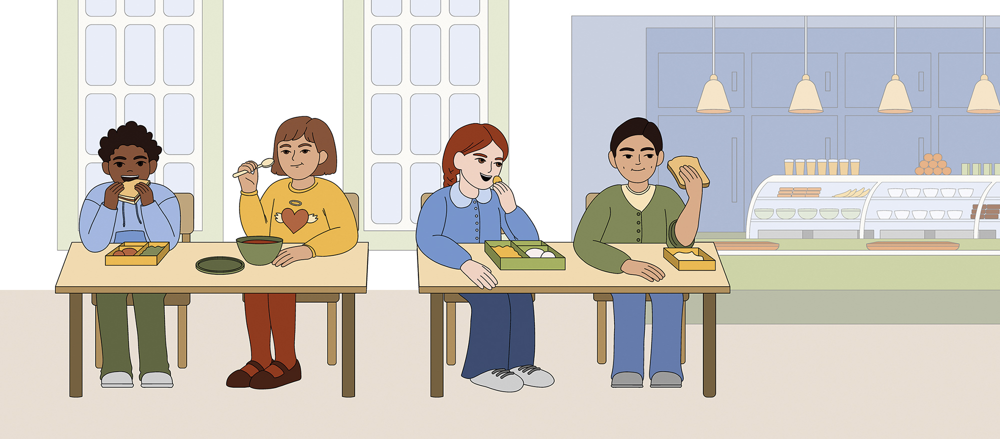 Etusivu > Aineistot > Tiedotteet Flat children eat food in school canteen Share this...FacebookPinterestTwitterLinkedin